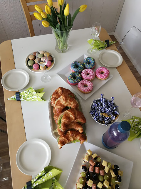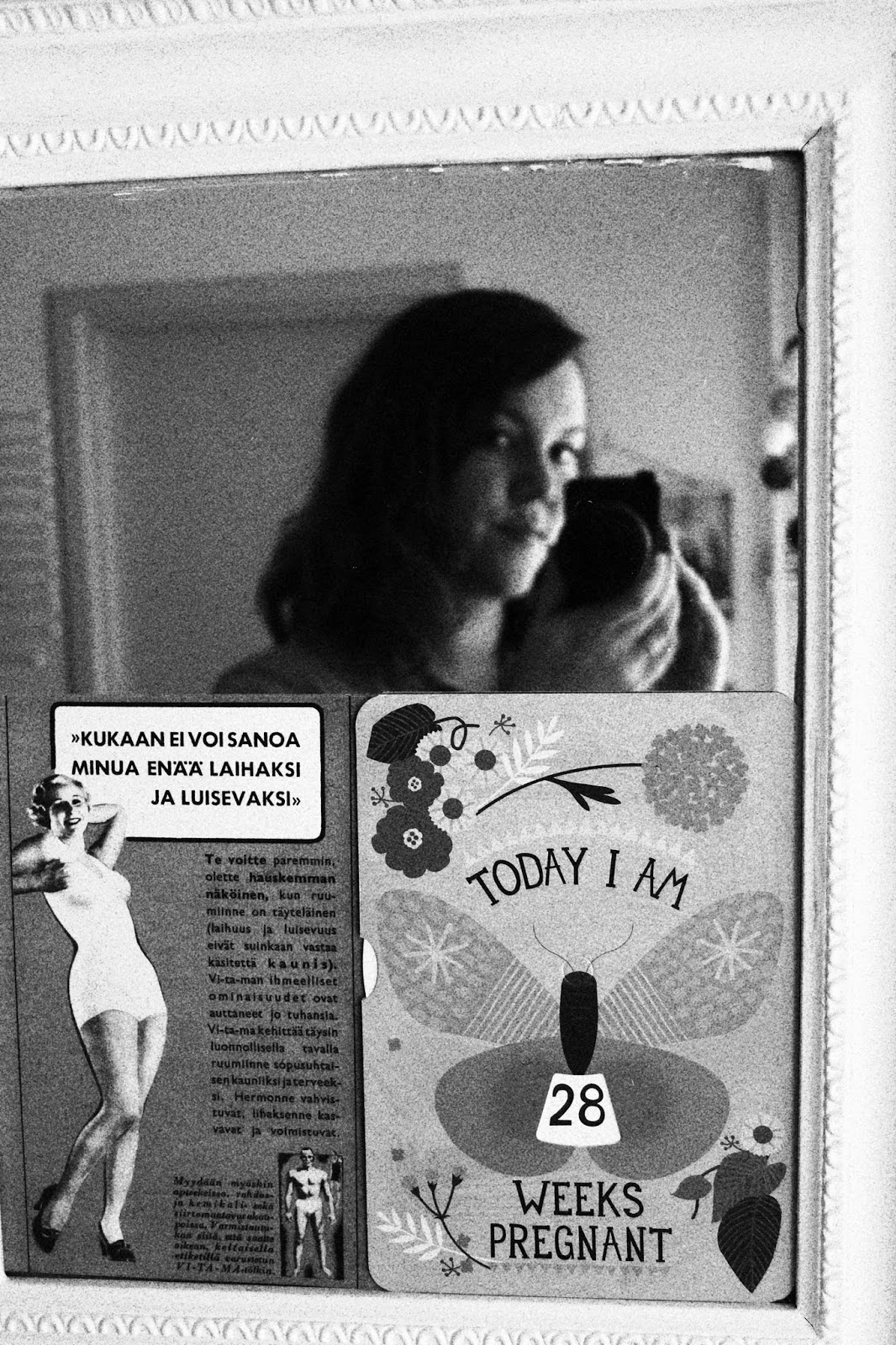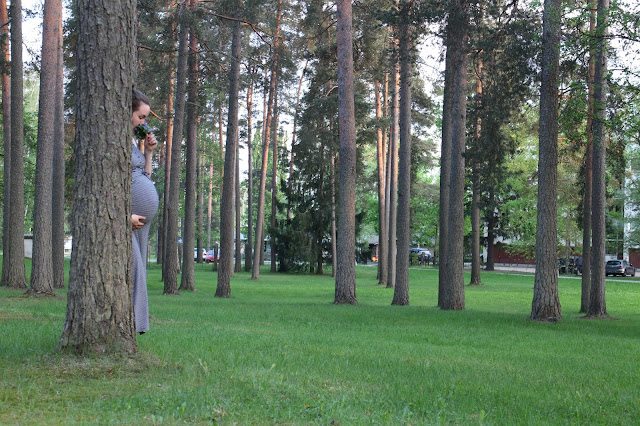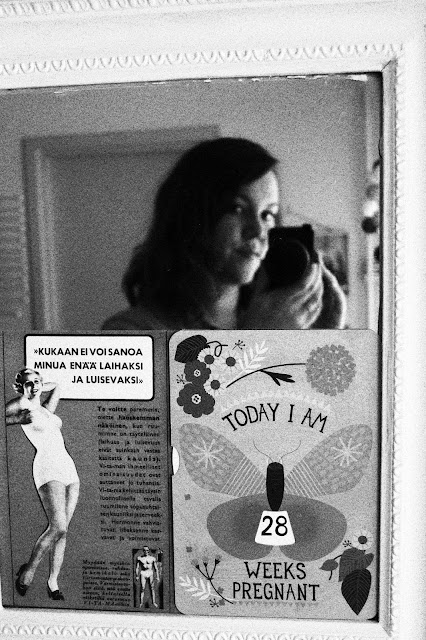 Odotus Kesäkuisen loppuraskaus Kukaan ei voi sanoa minua enää laihaksi ja luisevaksi! Viimeinen kolmannes rv 29-41 (Tämäkin teksti kirjoitettu toukokuussa 2019 loppuraskaudessa) Viimeisen kolmanneksen alku sujui vielä energisissä meiningeissä. Maaliskuulle sattui useampi reissu mm. Tahkolle ja kävimme siskon ja äidin kanssa Helsingissä lapsimessuilla. Töissä alkoi olla ERITTÄIN tukalaa fyysisesti, mutta sinnittelin omasta mielestäni kohtalaisesti lähes loppuun asti, vaikka siitepölykausi iskikin minut vuoteen omaksi hieman alle kaksi viikkoa ennen virallisen äitiysloman alkua. Fyysinen työ nosteluineen ja hyppyineen oli jo aika tuskaa, joten pyrin tekemään mahdollisimman paljon toimistohommia. Hemmottelin itseäni käymällä Ekoputiikki Purossa “Cool Mama” -hoidossa ja myös Ksaolla opiskelijatyönä jalkahoidossa. Olen huomannut, että olen raskausaikana paljon mieluummin tehnyt ja valinnut asioita, jotka TUNTUVAT hyvältä sen sijaan, että asiat näyttävät hyvältä, esim. hiusten hoidossa tärkeämpää ollut se, miten hiukset voivat, kuin esim. värjääminen. Jalkahoitoa suosittelen ehdottomasti ja muutenkin olen kotona innostunut tekemään ekstrapaljon jalkakylpyjä. Myös erilaiset kasvonaamiot ja viilentävät silmälaput ovat olleet loistavia. Tahkolla lomaillessa olin myös ihan sairaan ihanassa Treatment for Mama- hemmotteluhoidossa, joka oli superrentouttavaa! Tässä vaiheessa maha oli jo revennyt kauttaaltaa isoille, syville, violeteille raskausarville ja kosmetologi katsoi sinä säälivästi.. MITKÄÄN ÖLJYT TAI RASVAT EIVÄT OLISI VOINEET SITÄ ESTÄÄ! Pääsiäisenä kävimme T:n kanssa Korian luontopolulla, jossa tehtiin notskissa makkarat ja syötiin eväitä. Ähisin ja puhisin rappusissa, ylä- ja alamäissä. Pääsiäisen jälkeen alkoikin äitiysloma ja sen kunniaksi kutsuin muutamia työkavereita meille herkuttelemaan. Koska mulla ei ollut baby showeria kannustin vieraita ottamaan sinisen tai pinkin donitsin sen perusteella, arvelivatko he vauvan olevan tyttö vai poika ja tällä kertaa siniset donitsit voittivat (mahan muodon perusteella). Tähän väliin taas huomio; miten ihmeessä jotkut pärjäävät ilman raskaus/odotus/äitiysvaatteita?? Ilmeisesti he ovat niitä ihmeihmisiä, jotka ovat jo ennestään hyvin hoikkia ja sitten vaan vaihtavat kokoa isompaan vaatetukseen ja vähän löysempiin housuihin tai käyvät miehen vaatekaapilla. Itse en todellakaan ole mahtunut normivaatteisiin enää pitkään aikaan, enkä todellakaan miehen vaatteisiin!!! Isoimpia haasteita ovat alushousut, sukkahousut ja ylipäätään alaosat. [Viimeisillä viikoilla edes äitiysfarkut eivät mahtuneet kiinni, toim. huom]. Siinä vaiheessa, kun halusin peittää vielä raskautta, ihan parhaita olivat jo olemassa olevat pitkät tunikat mm. Marimekot peittivät vatsan erinomaisesti. Lopussa kuitenkin ihan äitiysvaatteiksi tarkoitetut paidat olivat ehdottomia, paras ostos oli mm. Mamaliciouksen tavallinen perustoppi, joka mulla oli valkoisena, mustana ja oliivin vihreänä. Muut raskaushousut ja t-paidat ostin kirpparilta ja olen ollut niihin tosi tyytyväinen. Mulla oli vain yhdet äitiyslegginssit (niitä ois tarvinnut lisää!) mutta onneksi löysin kirpparilta vastaavat caprit, joiden avulla olen selvinnyt toukokuun lämpimät viikot. Useimmat kengät ovat jääneet tässä vaiheessa pieneksi. Tukisukissa on tuskaisen kuuma, mutta ei auta, haluan pitää niitä, koska äitini pelotteli suonikohjuista. Juoksulenkkarit (yhden koon isommat kuin normaalikokoni) menevät jalkaan. Haaveilen sellaisista tukipohjallisista, joilla astuminen ei sattuisi niin paljon. Jalat ja polvet ovat kipeät, samoin olkapäät. Muuten olo on ihan hyvä ja selkään ei satu yhtään. Sitä pelkäsin etukäteen eniten. Mulla ei ollut Baby Showeria mutta työkaverit Laura ja Ankku pääsivät yllättämään mut vaippakakulla ja aivan ihanalla saunaillalla. Jätskiä, yhdessä oloa, sauna ja kasvonaamiot, aivan ihanaa aikaa! Olin tätä ennen itkeskellyt yksinäisyyttäni äitiyslomalla ja sitä, että KAIKKI OVAT UNOHTANEET MINUT. Sellainen olen, tuijottelin tiiviisti omaa napaani ja unohdin, että muilla elämä ja arki jatkuu normaalisti. Noloa, typerää mutta pistetään puoliksi hormonien piikkiin. Viikon kestänyt kiukku ja itkeskely helpotti ystävien seurassa ja jälkikäteen nolotti oma käytös erityisesti puoliskoa kohtaan, joka oli syytön. Onnellinen ja kiitollinen mama! En jaksa tällä hetkellä hirveästi murehtia tulevaa. Voisin tietysti kieriskellä pelossa ja ahdistuksessa tulevasta synnytyksestä ja äitiydestä ja osaanko hoitaa vauvaa MUTTA MIKSI, koska en tiedä noista aiheista mitään!!! Voin lukea kirjoja ja muiden kokemuksia synnytyksestä ja äitiydestä, mutta eihän siinä ole mitään järkeä, kun kaikilla kuitenkin esim. kivun kokeminen on yksilöllistä. Millaista on olla äitiyslomalla? Harjoittelen olemaan itselleni armollisempi, harjoittelen lepäämistä ja alisuorittamista. Siinä onkin hommaa!!!! Ikävöin ihan tolkuttomasti ystäviäni todella paljon. Olen pari viikkoa siivonnut maanisesti mutta olen jo nyt huomannut, että se siivoaminen ei jostain syystä lopu siivoamalla. Suunnitelmissa on, että joku päivä tiskaamisen ja vaatekaapin järjestelyn sijaan malttaisin taas tarttua siveltimeen ja maalata pitkästä aikaa. Olen huomannut olevani jotenkin herkistyneessä tilassa, erityisesti jotenkin LUONNON KAUNEUS liikuttaa. Olen kävellyt todella paljon. Toukokuussa, kun oli kylmempää kävin välillä esim. kukkakaupassa fiilistelemässä ja jotenkin muutenkin kukat ovat olleet mielessä esim. maalatessa. En nimittäin ole ikinä valinnut aiheeksi vapaaehtoisesti esim. ruusuja tai vastaavia. Nyt vaan tunnelmoin kuunnellen Radio Suomea ja nautin kaikesta hempeästä ja romanttisesta.. Maha on iso, sen kanssa on vaikea kävellä ja vaikea istua. Käytän tukivyötä mutta apuvälinelainaamosta hakemani vyö alkaa jäädä pien